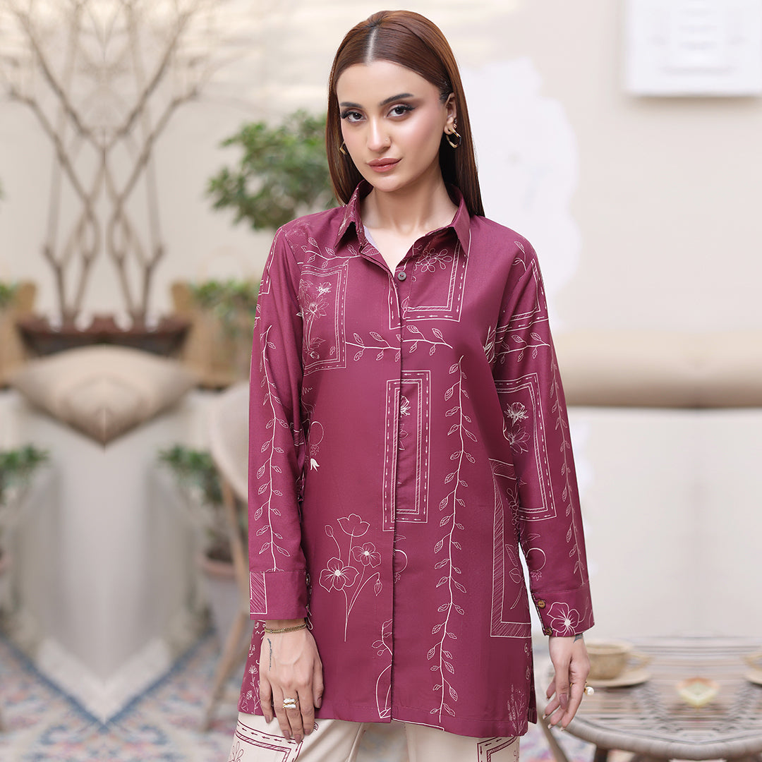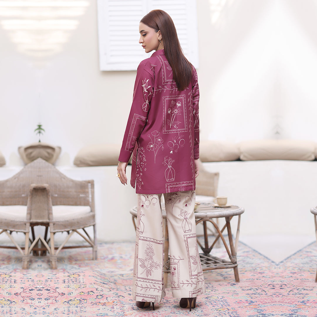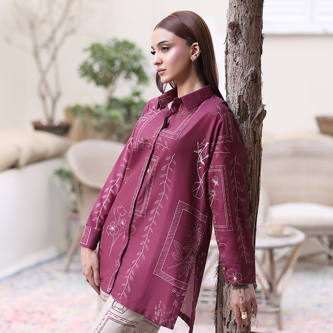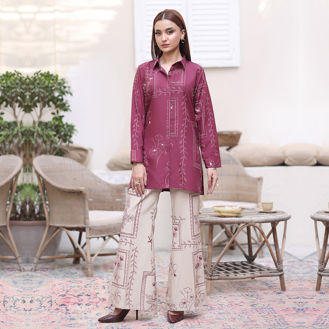 Button downed shirt, featuring a floral print, full sleeves with wooden button details and Printed pants featuring a flared cut.